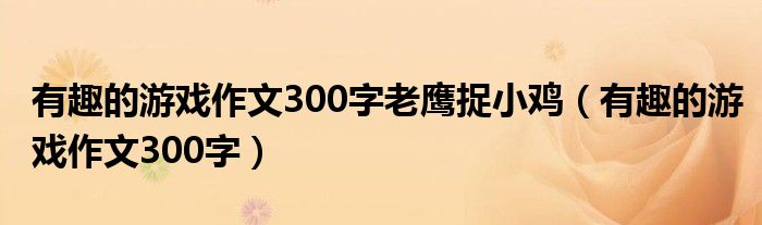 大家好,小联来为大家解答以上的问题。有趣的游戏作文300字老鹰捉小鸡,有趣的游戏作文300字这个很多人还不知道,现在让我们一起来看看吧!