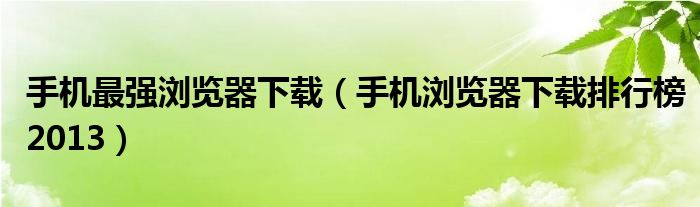 今天小饼为大家解答以下问题,关于手机最强浏览器下载,手机浏览器下载排行榜2013很多人还不知道,现在让我们一起来看看吧!