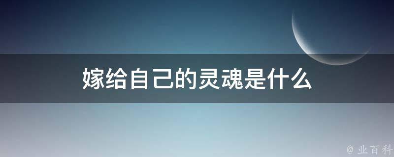 嫁给自己的灵魂指的是自己的灵魂才是真正的终身伴侣。真正的灵魂伴侣在一起,能够彼此扶持,共同进步,将平平淡淡的日子过得有滋有味。在这个世人匆忙逐利又被利所逐的时代,待人接物都有一种闲适、平常而独特的灵魂,内心绚烂,即使无人问津,也能保持取悦自己的勇气和能力。