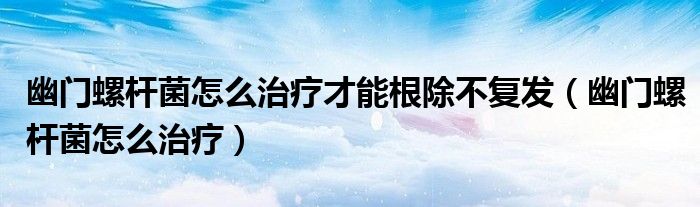 大家好,乐天来为大家解答以下的问题,幽门螺杆菌怎么治疗才能根除不复发,幽门螺杆菌怎么治疗很多人还不知道,现在让我们一起来看看吧!