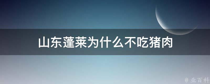 山东蓬莱并没有不吃猪肉。山东蓬莱市是山东省烟台市下辖县级市,是一个以汉族为主的多民族聚居的地方,这里的饮食文化独具特色,主要以鲁菜为主,而鲁菜中以猪肉为主要食材的菜品有很多,如红烧肉、猪肉炖粉条等。