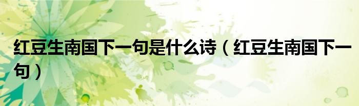 大家好,我是小科,我来为大家解答以上问题。红豆生南国下一句是什么诗,红豆生南国下一句很多人还不知道,现在让我们一起来看看吧!