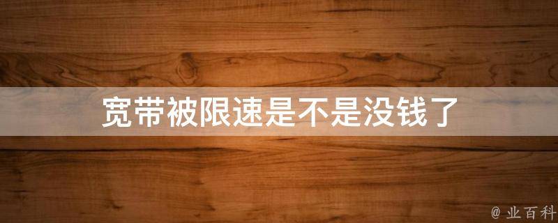 宽带被限速不是没钱了。宽带限速通常是由于网络管理员对网络使用进行限制或分配的带宽不足,或者是由于网络拥堵、服务器限制等原因导致的。如果发现自己的宽带被限速,可以联系服务提供商以了解具体原因和解决方案。