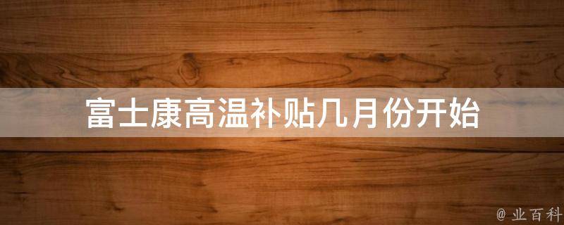 富士康高温补贴6月份开始。国家规定,用人单位安排劳动者在高温天气下(日最高气温达到35℃以上),露天工作以及不能采取有效措施将工作场所温度降低到33℃以下的,应当向劳动者支付高温补贴。富士康发放高温补贴的月份一般是6月至9月。