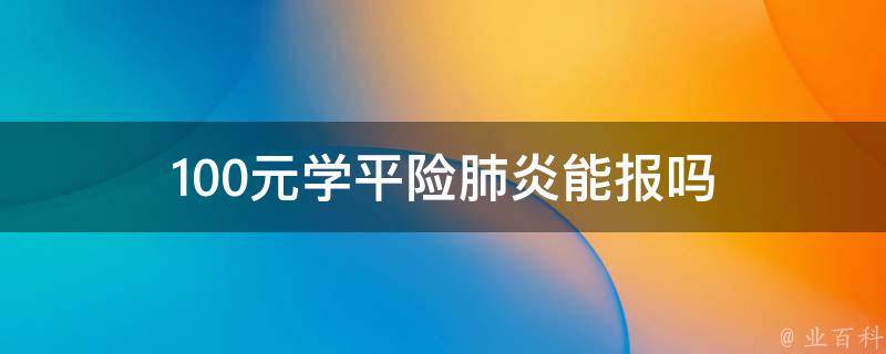 视情况而定。100元学平险的肺炎是否能够报销,取决于保险合同中的具体条款。如果学平险的条款中包括了因疾病住院的保障范围,那么肺炎住院的费用是可以报销的。然而,需要注意的是,报销的额度不能超过保额。