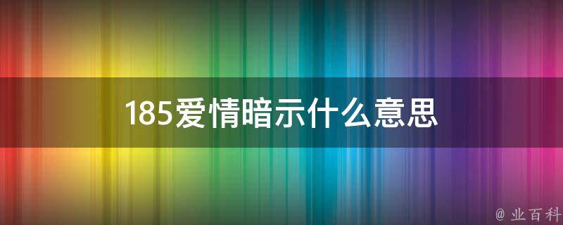 185爱情暗示要抱我。数字185的汉字拼音谐音就是要抱我,也就是表达了你一定要来紧紧抱住我的意思,希望你能够给我安全感,希望你能够让我感觉可依靠,希望我们两个人一直这样紧紧抱着不分离。