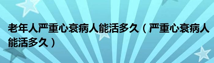 大家好,乐天来为大家解答以下的问题,老年人严重心衰病人能活多久,严重心衰病人能活多久很多人还不知道,现在让我们一起来看看吧!
