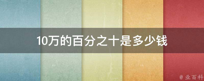 10万的百分之十是一万。这是一个简单的概率核算问题,意思就是把10万分成100份,其中一个人占比10份,也就是十分之一。十万的百分之一是十万乘以百分之十一,等于一千,十万的百分之十是十万乘以百分之十,等于一万,因此十万的百分之十是一万。