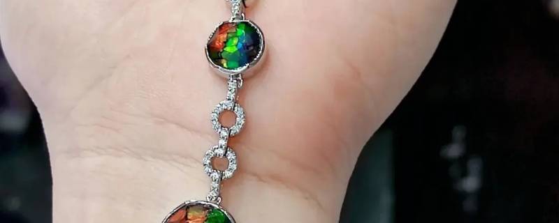 斑彩石适合女生戴,会显得人更加靓丽。斑彩石是一种稀有的发乳光的宝石,商品名为Calcentin或Koroit,成分来源是菊石的化石残骸。斑彩石不能直接裸露在空气中,出土的原料在一年之内不做任何处理,颜色将慢慢变淡,只有覆膜才能保护斑彩石,避免斑彩石氧化。