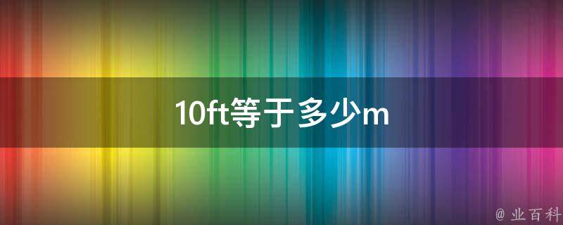 10ft等于3.048m。根据查询长度换算单位得知,1英尺(ft)=0.3048米,通过计算:10*0.3048=3.048m,所以是等于3.048米。ft即英尺,现今美国、利比里亚及缅甸也使用。