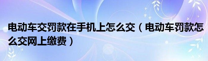 大家好,我是小科,我来为大家解答以上问题。电动车交罚款在手机上怎么交,电动车罚款怎么交网上缴费很多人还不知道,现在让我们一起来看看吧!