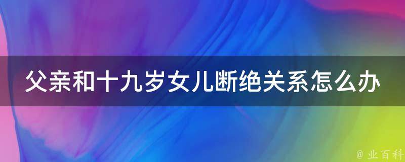 父亲和十九岁女儿断绝关系在法律上是不被认可的。我国血缘关系在法律上是不能解除的。对于父亲来说,在孩子未成年之前要尽到抚养的义务,就算是成年之后,也应该继续提供力所能及的帮助、引导和教育。而成年子女对父母有赡养、扶助和保护的义务。