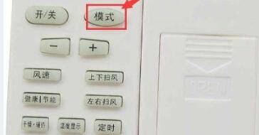 2、点击遥控器的“模式”按钮,调节空调模式,实现制冷、制热、除湿、自动切换。调整到制热模式,遥控器上显示“制热”。空调也会显示一个图标对应加热。