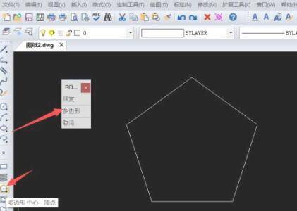 以华为MateBook X,win10系统,AutoCAD2020为例:在CAD界面中创建一个新的空白文档,利用“多边形”工具绘制一个图形。