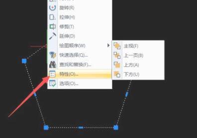 我们也可以直接右击对应的图形,从弹出的右键菜单中选择“特项“,如图所示:此时将弹出”特性“属性窗口。