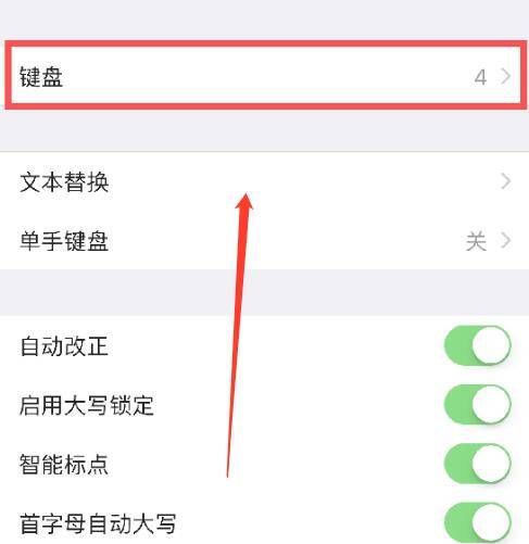 2、点击键盘,在键盘设置中,点上方的键盘。