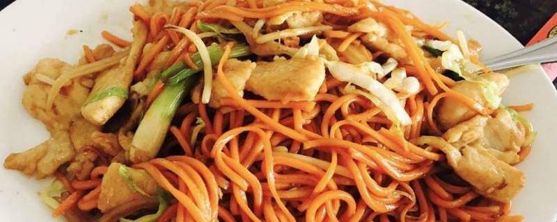 4、然后放入面条,腊肠继续翻炒。