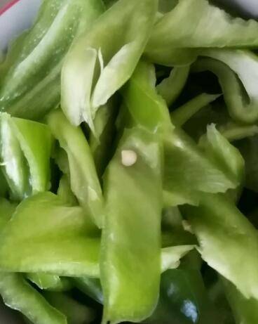 2、青辣椒切好备用。