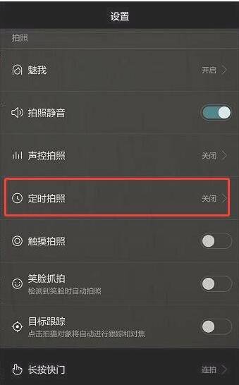 在设置页面找到“定时拍照”,默认状态下呈现关闭状态。