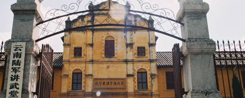 4、云南陆军:讲武堂位于昆明市翠湖西承华圃,创办于1909年。直到今天遗址尚存,并且于1988公布为国家级重点文物保护单位。现今还存在着一幢米黄色砖木结构的四合院的二层建筑。