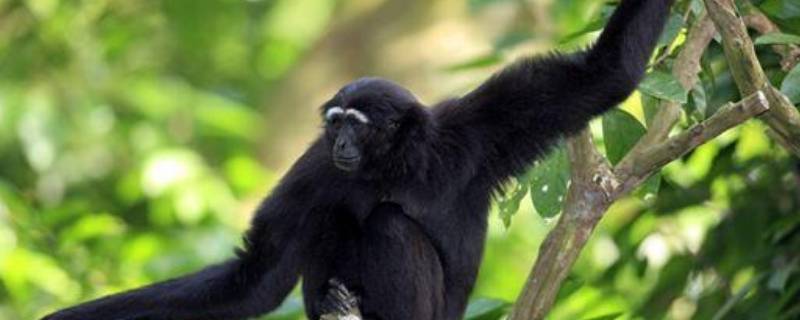 长臂猿。长臂猿的身体最突出的是它的手臂,两手攀着树枝,在森林里荡来荡去,疾如飞鸟,快似闪电,有“林中飞将”的美称。因此攀指长臂猿。