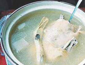加盐 鸭子宰杀后, 即刻用冷水将鸭毛浸湿, 然后再用热水烫。