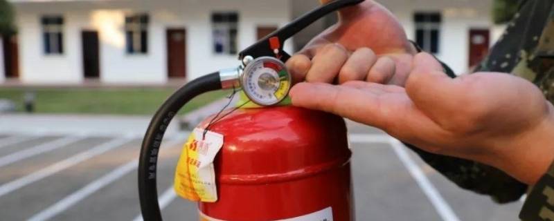4、手指压住灭火器的上下把杆上,此时灭火器的开关就会被打开,喷出干粉起到灭火。