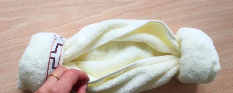 6、将毛巾中间的洞撑开,变成毛巾帽子即可。