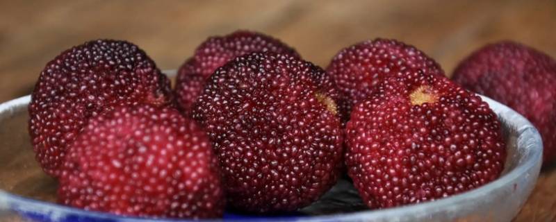 4、晚稻杨梅:产浙江省舟山皋泄,果平均重11.2克左右,圆形、色紫黑发亮、品质佳。