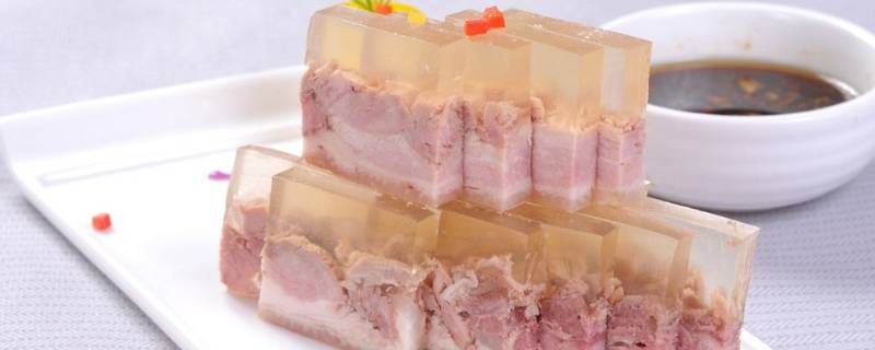 水晶肴肉,又名水晶肴蹄,是江苏镇江区汉族传统名菜,属于苏菜系,迄今已有300多年的历史。水晶肴蹄成菜后肉红皮白,光滑晶莹,卤冻透明,犹如水晶,故有“水晶”之美称。食用时,具有瘦肉香酥、肥肉不腻、酥香嫩鲜等特点,佐以姜丝和镇江香醋,更是别有一番风味。有诗赞曰:“风光无限数今朝,更爱京口肉食烧,不腻微酥香味溢,嫣红嫩冻水晶肴”。其主要食材有猪蹄、粗盐、葱结、姜片、绍酒、八角、桂皮、花椒等香料。