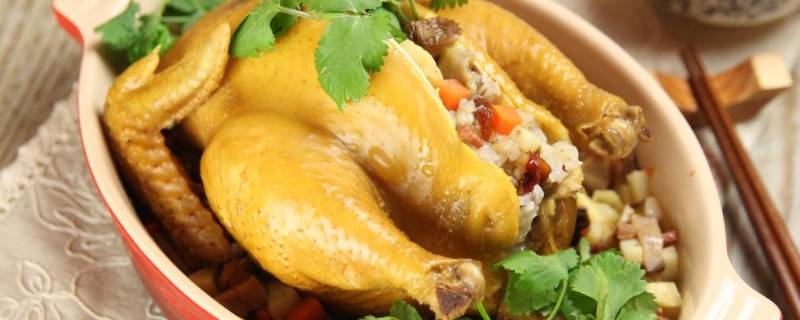 5、荷香八宝鸡:清远鸡、莲藕、莲子、香水莲花、冬菇、咸蛋王、火腿和瑶柱,这八宝被香炒后塞进鸡的腹内,然后再用刚出塘的鲜荷叶和肥美的塘泥先后包裹后放烘4个小时即可。