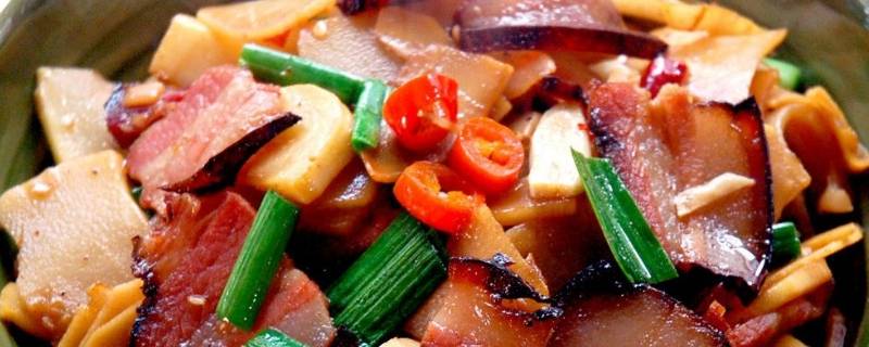 锅里放1勺食用油,放腊肉炒香,炒到腊肉微微卷起。