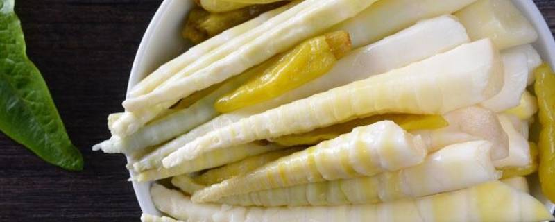 竹笋600g、泡椒50g、鸡精10g、盐25g、白糖10g、白酒30g、花椒15g、八角15g、大蒜20g、泡椒水100g、白醋30g。