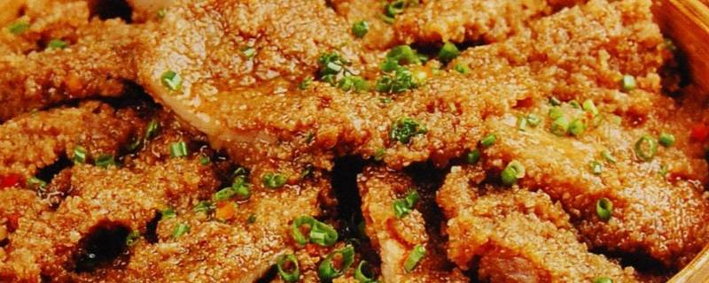 5、米粉蒸肉。江西南昌的名菜之一。在立夏的时候,当地人会吃的美食、它的味道有甜味、鲜味、咸味。米粉蒸肉的材料就是带皮猪肉、大米、葱等。