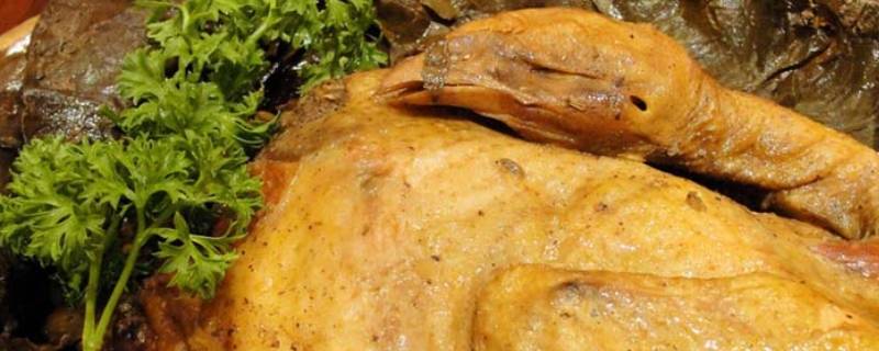 2、叫花鸡:叫花鸡,又称常熟叫化鸡、煨鸡,是江苏常熟地区传统名菜。制作材料有新鲜嫩荷叶、黄泥、活土鸡等。叫化鸡的制法与周代"八珍"之一的"炮豚"相似,"炮豚"就是用粘土把乳猪包裹起,加以烧烤,然后再进一步加工而成的菜。其色泽枣红明亮,芳香扑鼻,板酥肉嫩,入口酥烂肥嫩,风味独特。