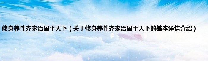 本文关于修身养性齐家治国平天下的基本详情介绍就讲解完毕,希望对大家有所帮助。