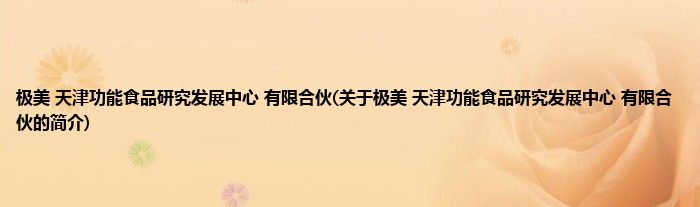 本文关于极美 天津功能食品研究发展中心 有限合伙的简介就讲解完毕,希望对大家有所帮助。