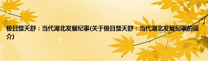 本文关于极目楚天舒:当代湖北发展纪事的简介就讲解完毕,希望对大家有所帮助。