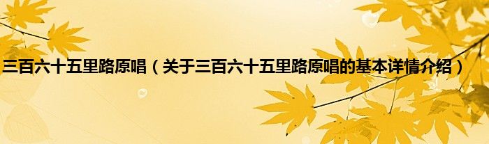 本文关于三百六十五里路原唱的基本详情介绍就讲解完毕,希望对大家有所帮助。