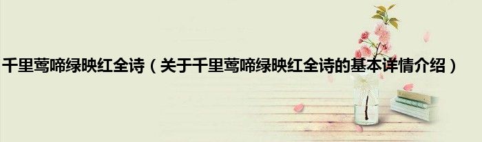本文关于千里莺啼绿映红全诗的基本详情介绍就讲解完毕,希望对大家有所帮助。