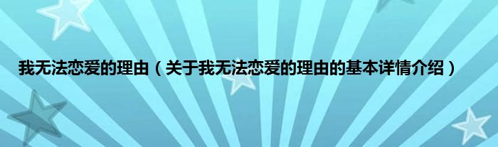 本文关于我无法恋爱的理由的基本详情介绍就讲解完毕,希望对大家有所帮助。