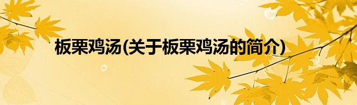 大家好,板栗鸡汤,关于板栗鸡汤的简介很多人还不知道,现在让我们一起来看看吧!