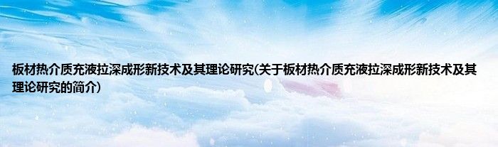 本文关于板材热介质充液拉深成形新技术及其理论研究的简介就讲解完毕,希望对大家有所帮助。