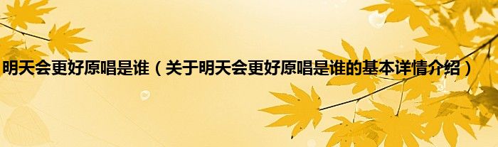 本文关于明天会更好原唱是谁的基本详情介绍就讲解完毕,希望对大家有所帮助。