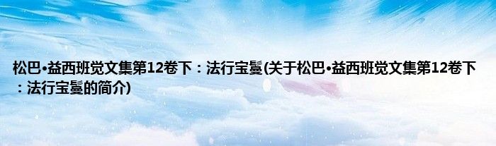 1、 《松巴·益西班觉文集第12卷下:法行宝鬘》是2010年青海民族出版社出版的图书。