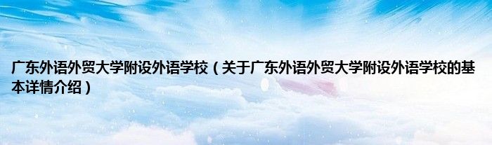 本文关于广东外语外贸大学附设外语学校的基本详情介绍就讲解完毕,希望对大家有所帮助。