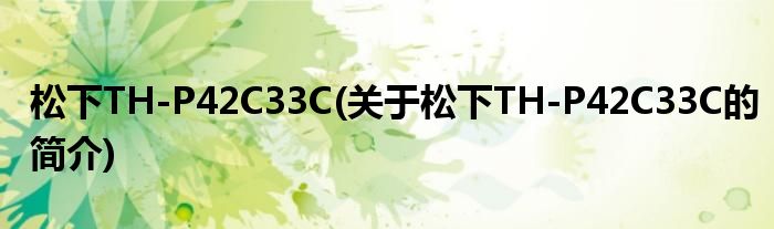大家好,松下TH-P42C33C,关于松下TH-P42C33C的简介很多人还不知道,现在让我们一起来看看吧!