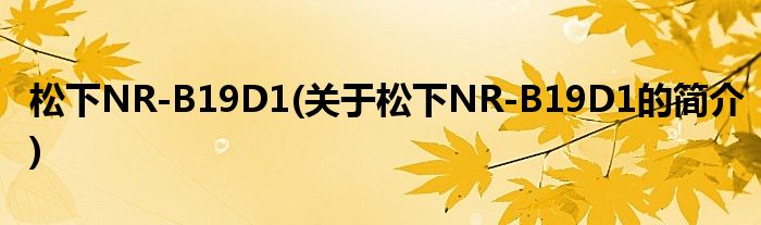 本文关于松下NR-B19D1的简介就讲解完毕,希望对大家有所帮助。