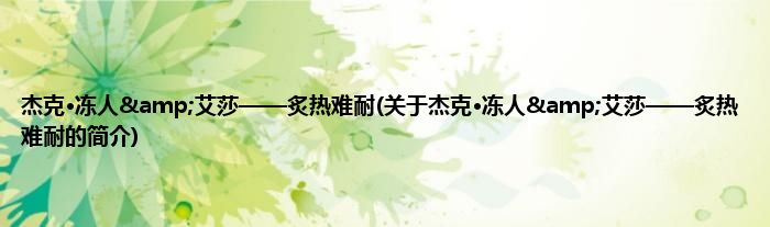 本文关于杰克·冻人&艾莎——炙热难耐的简介就讲解完毕,希望对大家有所帮助。
