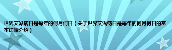 本文关于世界艾滋病日是每年的何月何日的基本详情介绍就讲解完毕,希望对大家有所帮助。